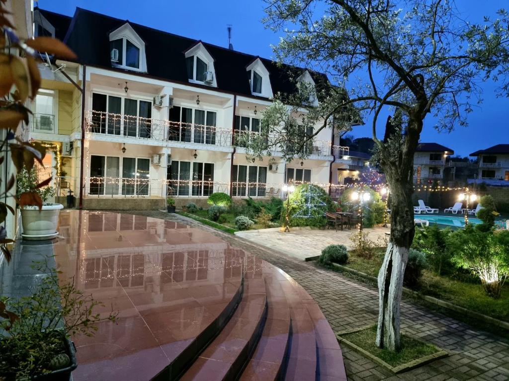 «Царская аллея» — уютный курортный комплекс уровня 4 звезды, соответствующий европейскому уровню сервиса. Отель находится в центральной части Нового Афона — города религиозных и культурных памятников древней Абхазии. В пешей доступности развитая инфраструктура: кафе и рестораны, торговые ряды и сувенирный рынок и живописный Приморский парк с ротондами и кипарисами.
